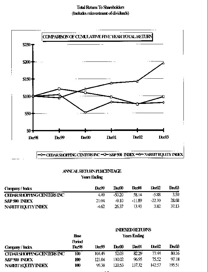 There is being mailed herewith to each stockholder of record the Company's Annual Report to Stockholders for the fiscal year ended December 31, 2003. It is intended that this Proxy Statement and form of Proxy will first be sent or given to stockholders on or about April 29, 2004. The Company's website address is www.cedarshoppingcenters.com.