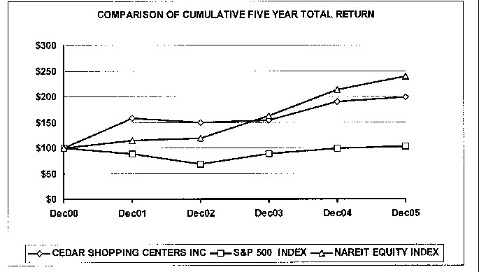 There is being mailed herewith to each stockholder of record the Companys Annual Report to Stockholders for the fiscal year ended December 31, 2005. It is intended that this Proxy Statement and form of Proxy will first be sent or given to stockholders on or about April 28, 2006. The Companys website address is www.cedarshoppingcenters.com.